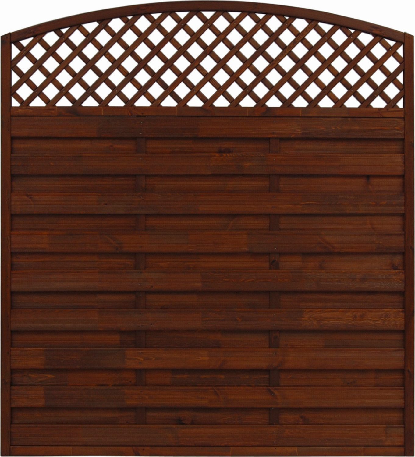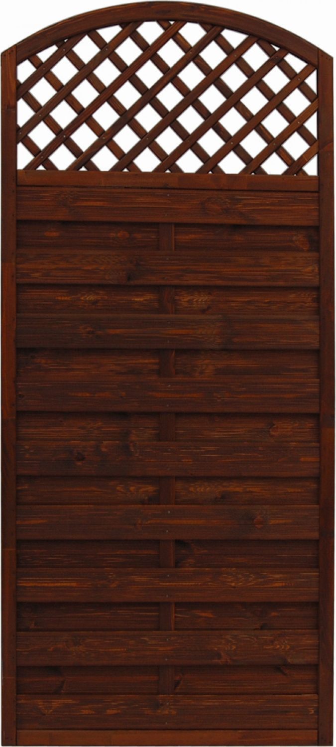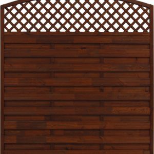 The Bordeaux fence seamlessly blends functionality with artistry, presenting itself in a two-tiered design. The foundation is crafted from grooved slats, providing a sturdy base and ensuring privacy. The crowning element is the ornate openwork at the top, characterized by a decorative lattice enclosed within a gracefully curved arch, meticulously crafted from glued wood. This design choice speaks to those with an affinity for traditional craftsmanship, yet who also appreciate a flair for nuanced elegance.