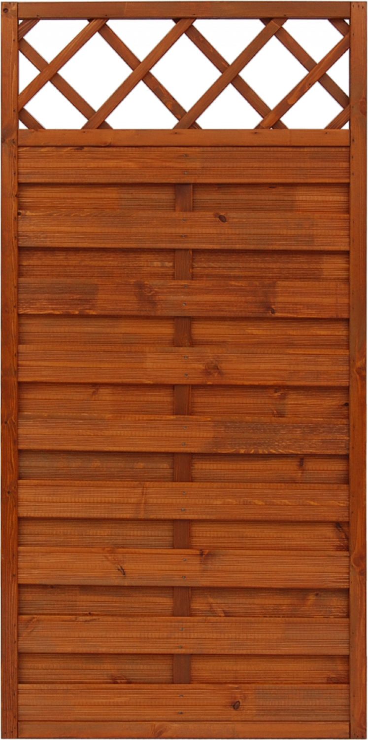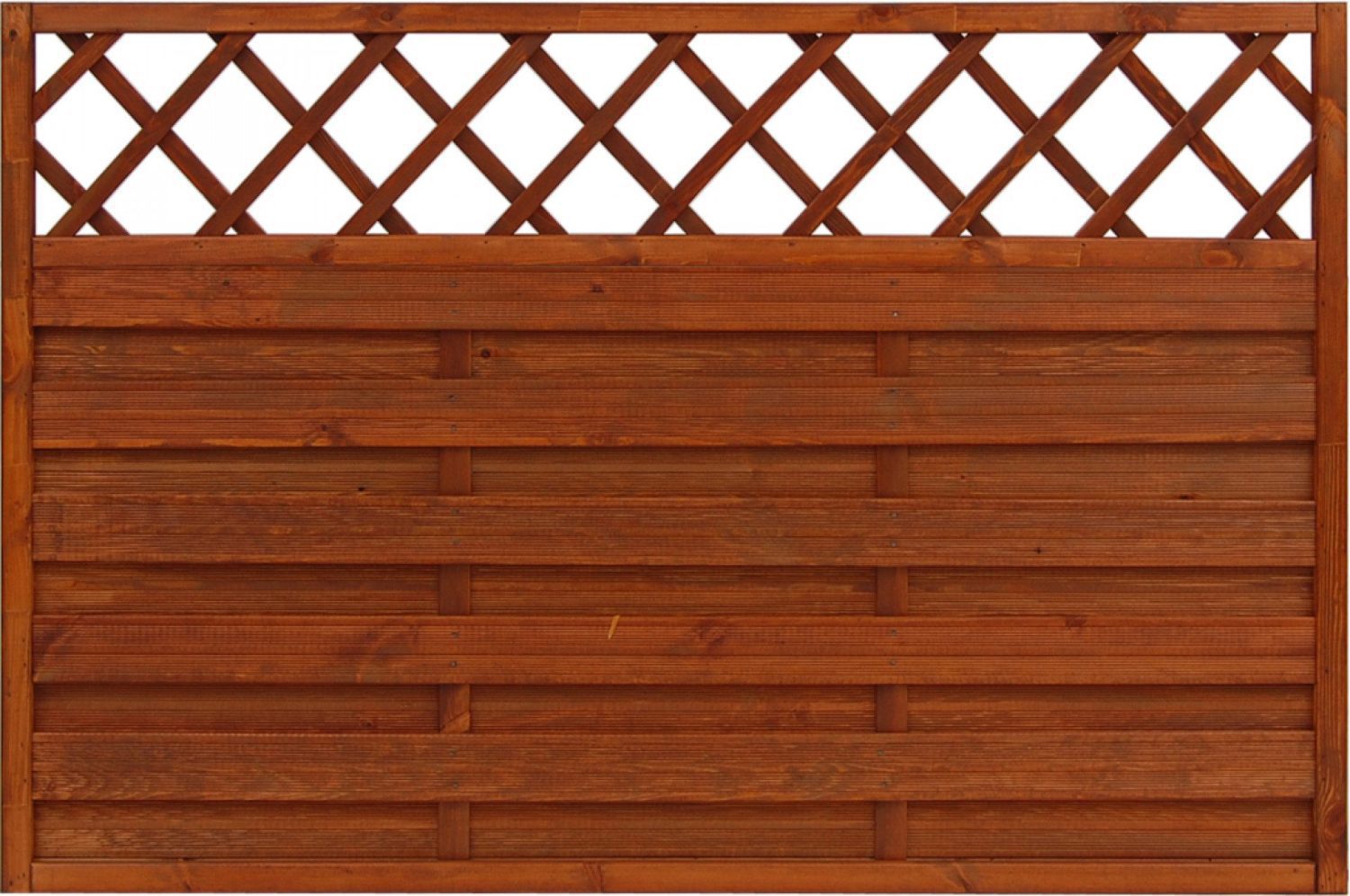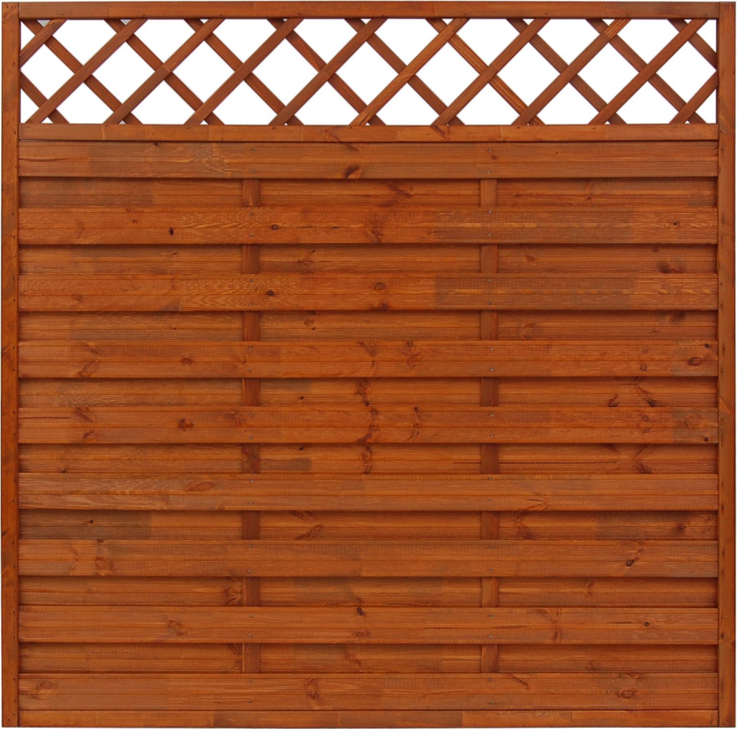 Horizontal Hit and Miss Fence Panel with Lattice Top Groove Slats Hamburg Teak