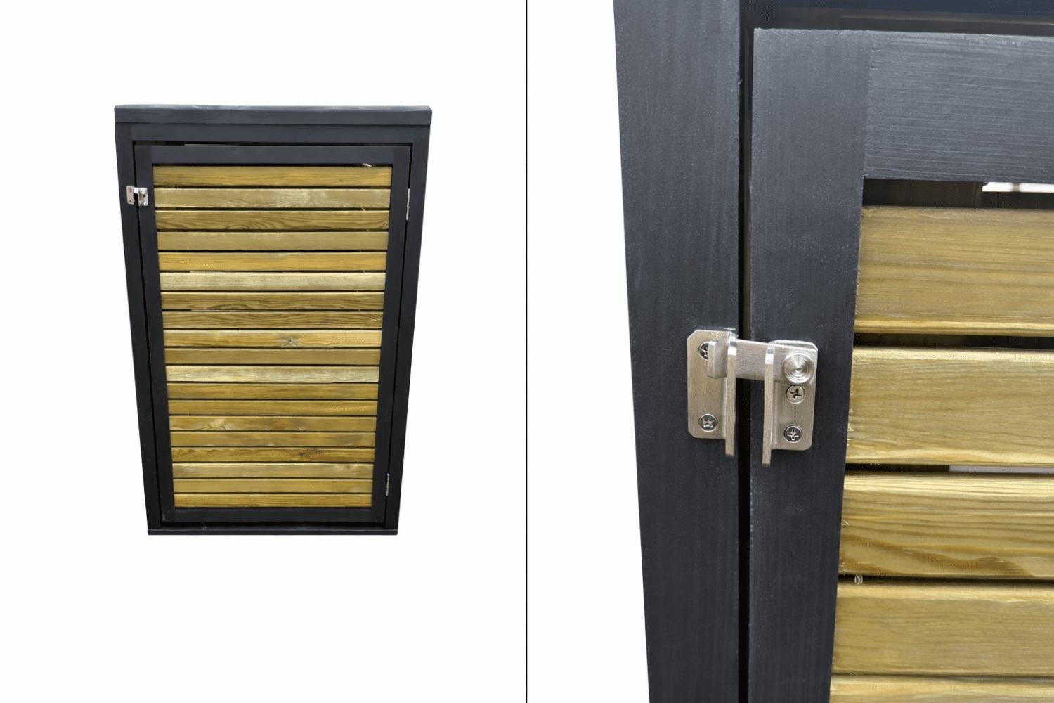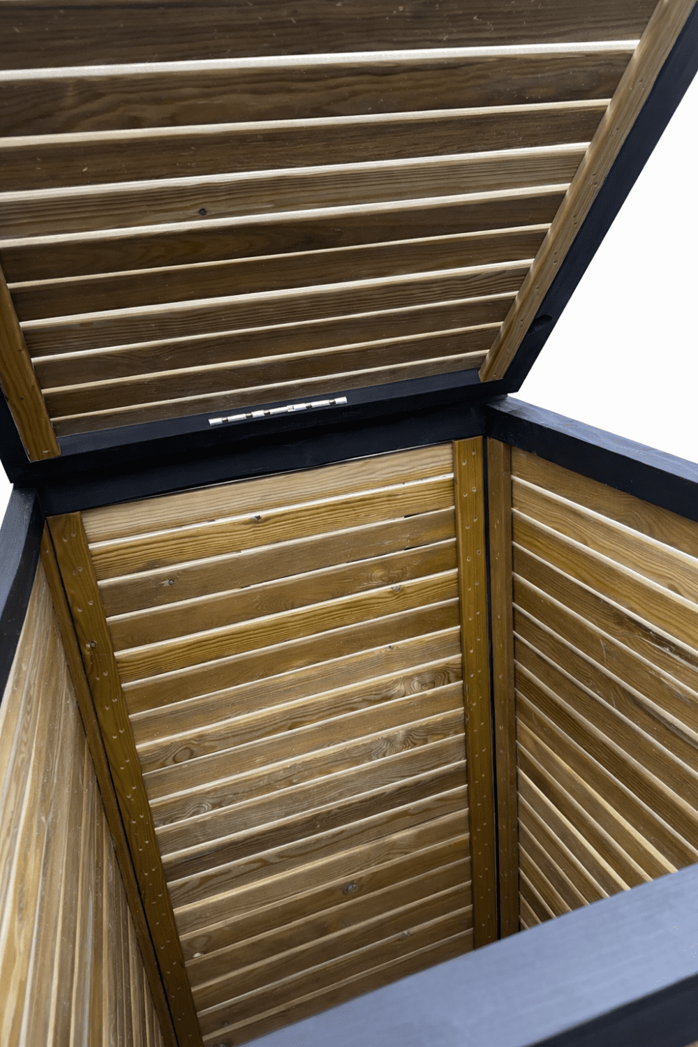 Scandinavian Redwood Wheelie Bin Store – Pressure Treated Timber is a premium outdoor storage solution designed to conceal standard and larger wheelie bins while enhancing your garden or driveway. Built from high-grade PAR Scandinavian redwood with chamfered edges and a strong softwood frame finished in Ebony Black, this durable unit is fully pressure treated for long-term weather protection. Fitted with stainless steel hinges and stainless steel catches/lock, it offers corrosion resistance, smooth operation, and secure everyday use — the perfect heavy-duty timber bin store for UK homes.