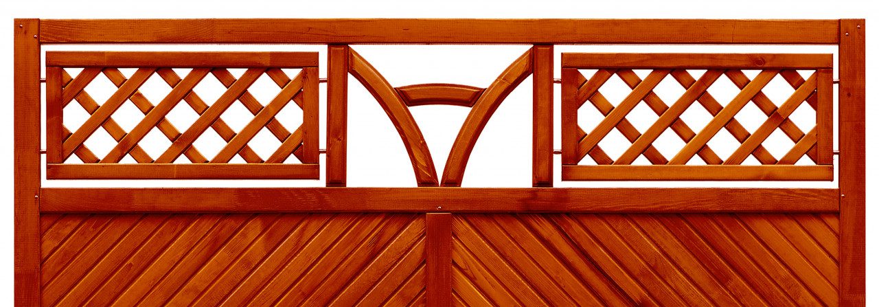 Togue and Groove Fence Panel Diagonal Narrow with Decorative Top Toulon Teak
