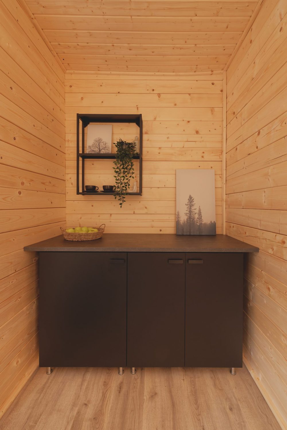 Constructed from high-quality, 70 mm thick solid wood, the Kostka I is built to last. The logs are meticulously four-sided planed and assembled using precise double tongue-and-groove technology, ensuring a tight and durable fit. The entire structure is externally impregnated to protect against adverse weather conditions, enhancing both its longevity and appearance.