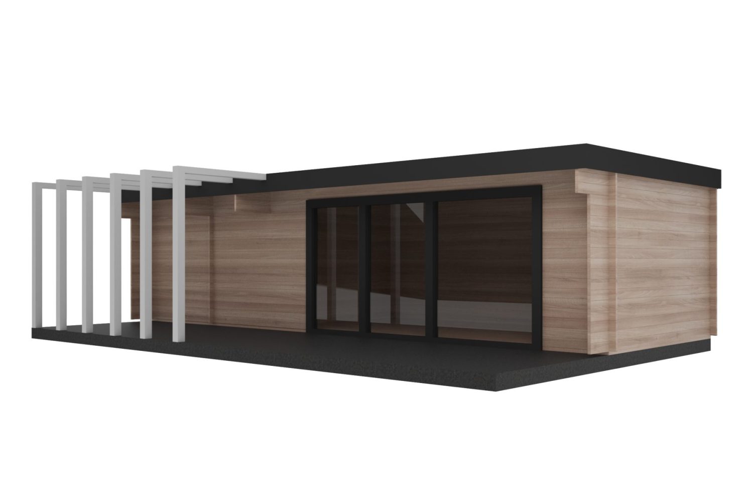 Discover the Garden Room Office Kostka I, a stunningly modern wooden house designed for both functionality and aesthetics. With its total area of 61.4 m², this office space is perfect for those seeking a stylish yet practical setting for year-round living, seasonal use, or investment purposes.