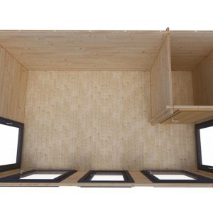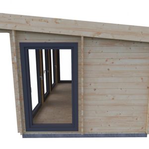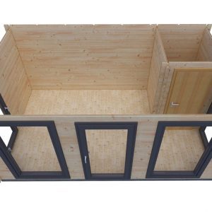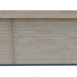 The Lagos is crafted from robust, four-sided logs that are 44 mm thick, ensuring the structure’s strength and longevity. The house rests on pressure-impregnated joists, providing additional durability and resistance to moisture and decay. It is assembled using a sophisticated double tongue-and-groove system, known for its reliability and effectiveness in sealing against the elements. The roof covers an area of 20.88 m² and features a practical 5° incline, optimizing water drainage and adding an architectural aesthetic.