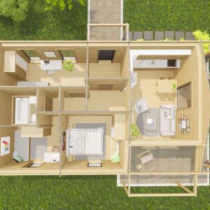 Our wooden houses combine classic design with modern functionality, offering a comfortable and inviting living space. With a thoughtfully designed interior, they provide ample room for bedrooms, a bathroom, a kitchen with a dining area, and a spacious living room—perfect for year-round living or a holiday retreat.