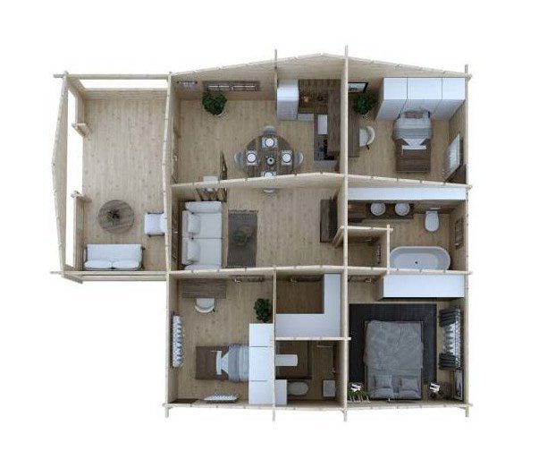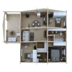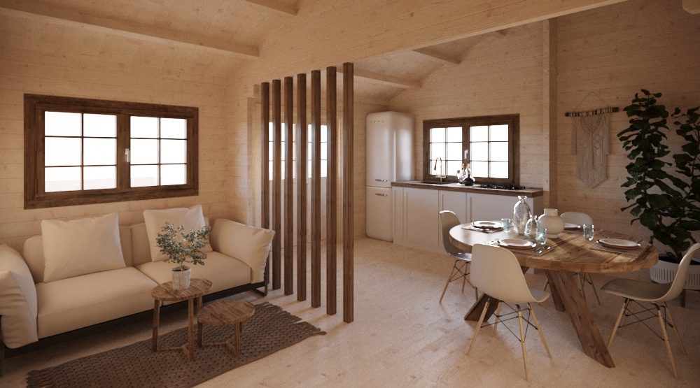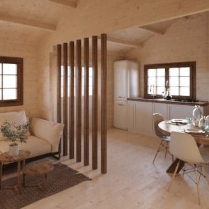 Our wooden houses combine classic design with modern functionality, offering a comfortable and inviting living space. With a thoughtfully designed interior, they provide ample room for bedrooms, a bathroom, a kitchen with a dining area, and a spacious living room—perfect for year-round living or a holiday retreat.